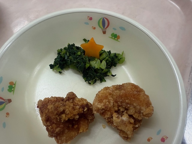 今日の給食は調理員さんがクラス1枚に塗り絵を準備してくださいました★