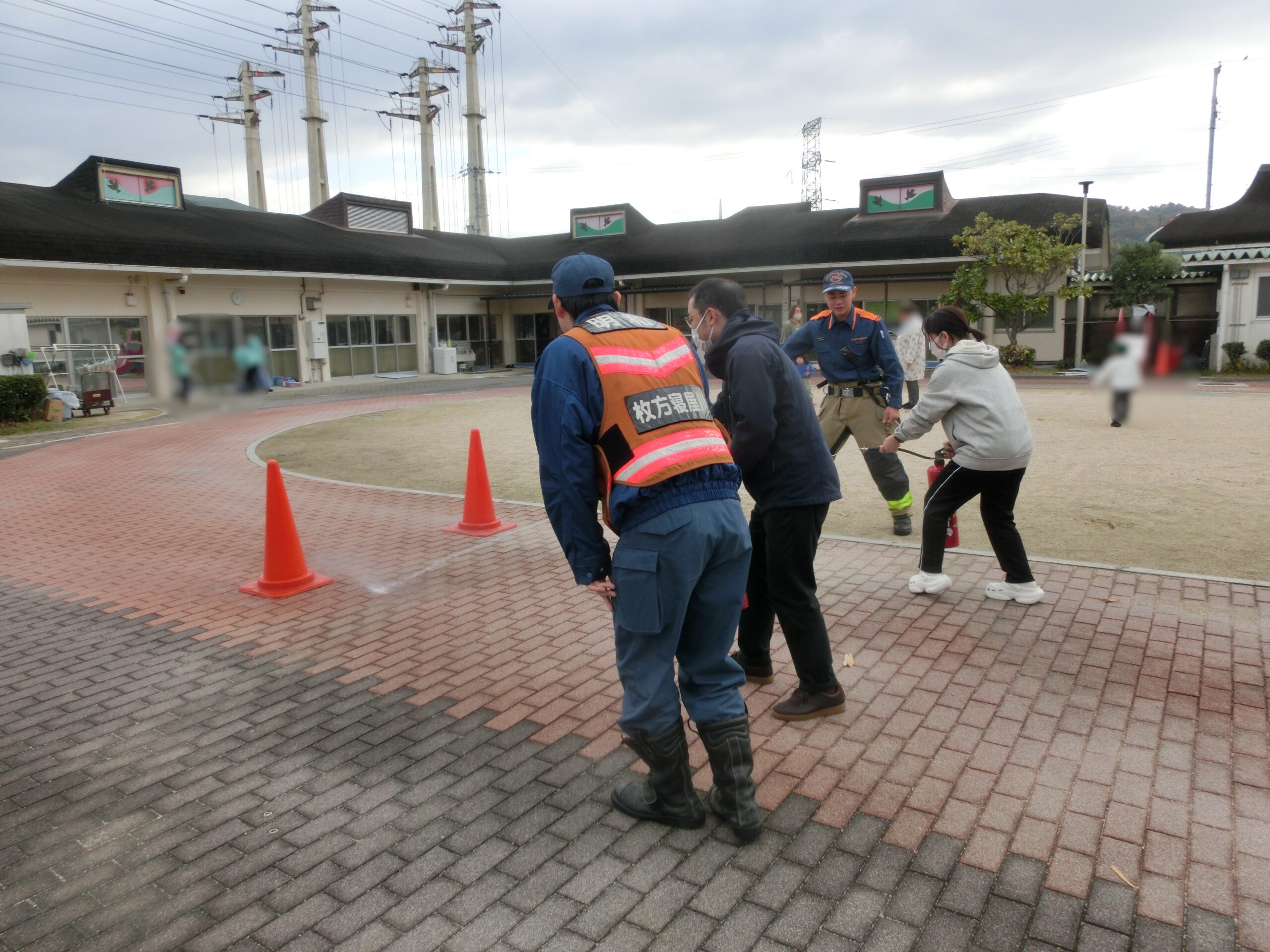 職員による消火活動も行いました。